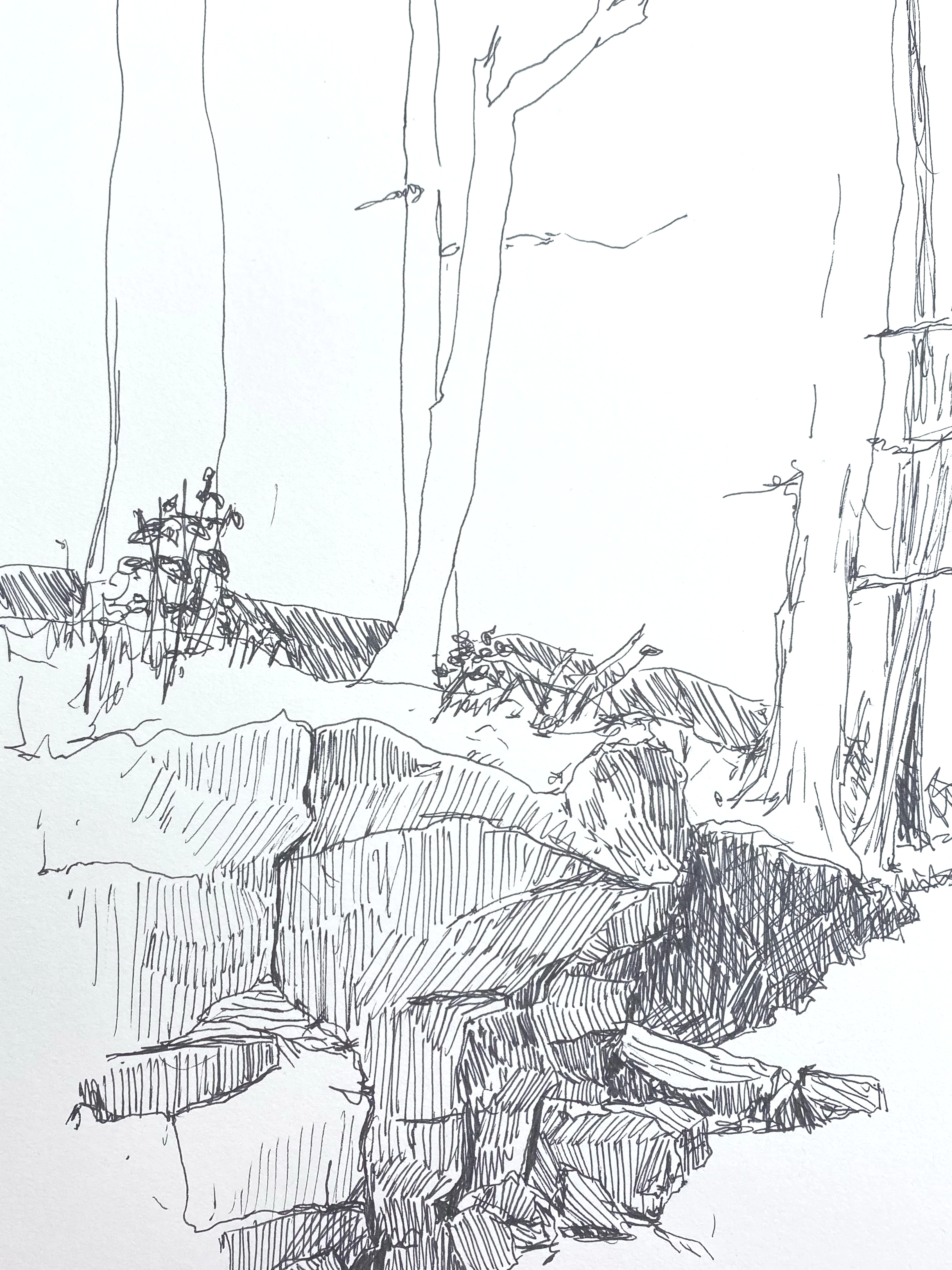 Which means possibly that the representation of rocks in drawing or painting can offer great freedoms. Everyone knows what a tree is roughly meant to look like. But with rocks, the recording process is open - make all the mistakes you want, emphasize whatever you feel is important, shards, light, shadows, cracks, lichen, growths, boulders, and no one is the wiser. I’ve noticed lately when visiting a local waterfall, if the painting is feeling too forced, I can draw some rocks to loosen up and reconnect with the simple act of looking.